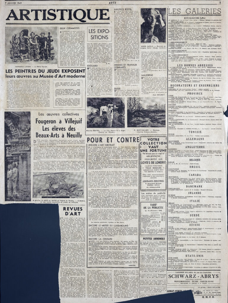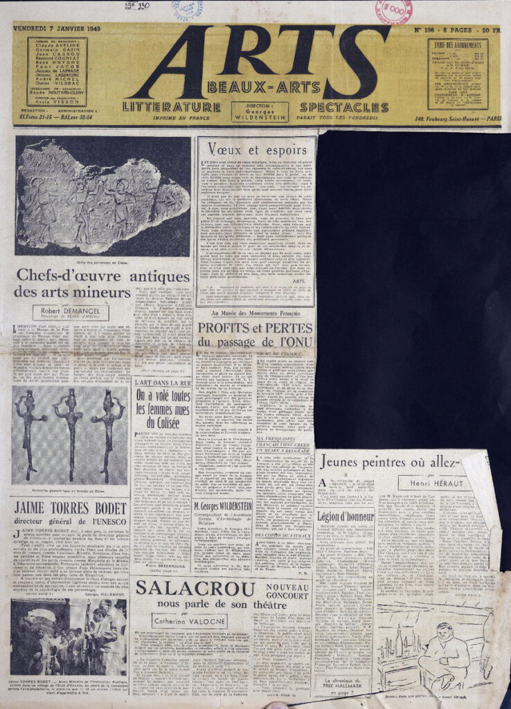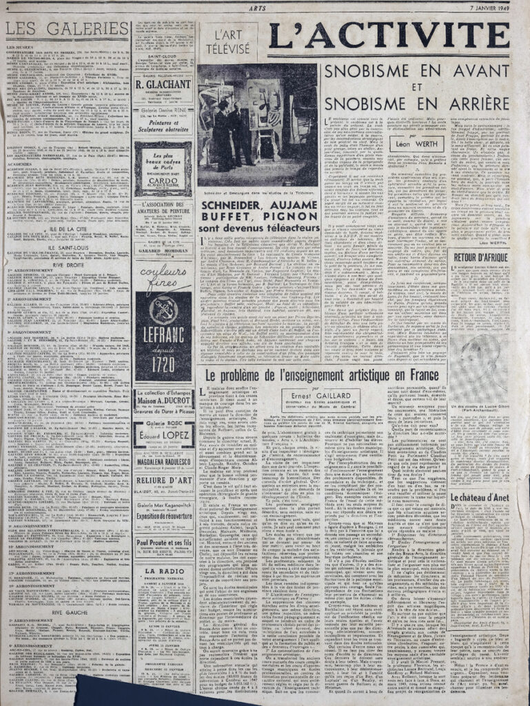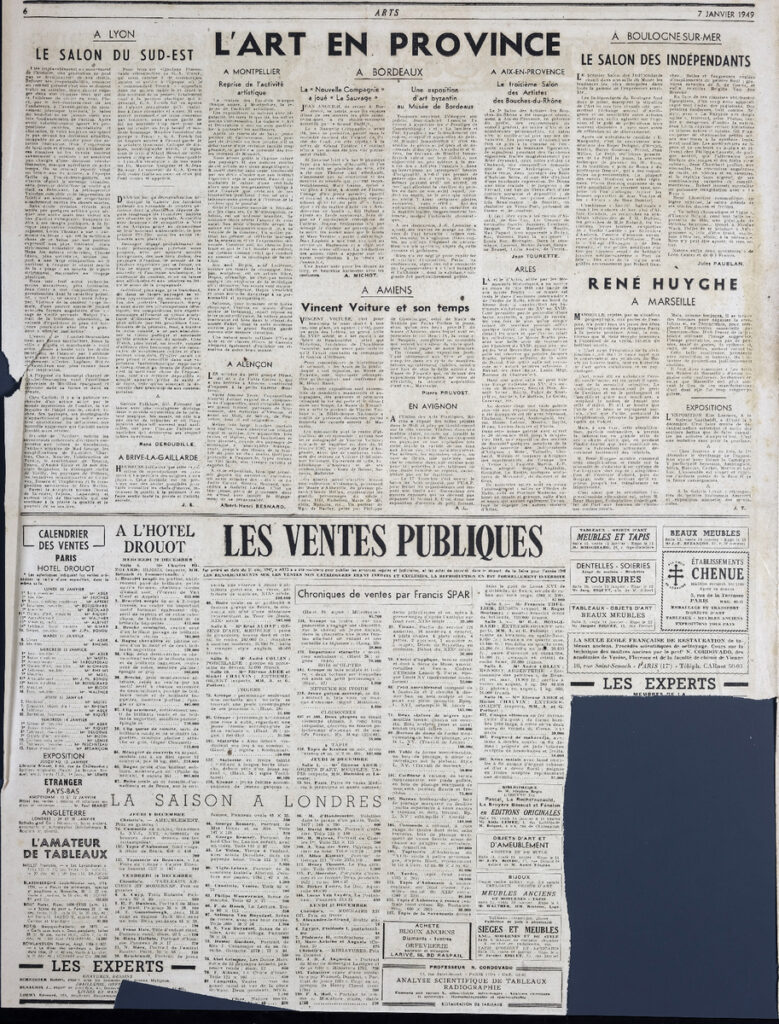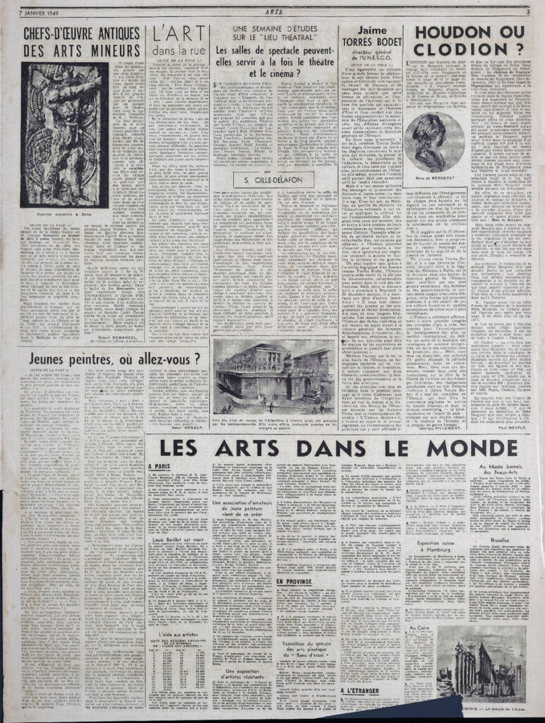 Έντυπο, στα γαλλικά, χαρτί, 3 φύλλα, 6 σελίδες, 56×43 εκ., όπου δημοσιεύονται άρθρα σχετικά με την καλλιτεχνική επικαιρότητα. Το τεκμήριο εικονογραφείται.