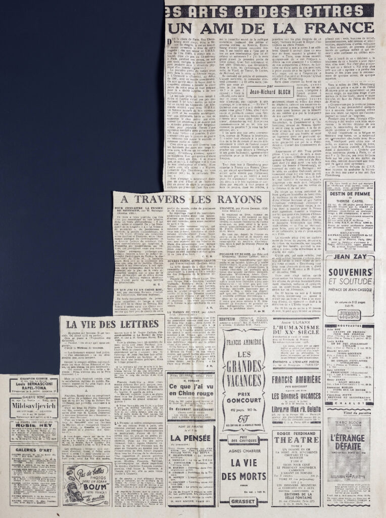 Έντυπο, στα γαλλικά, χαρτί, 10 σελίδες, 60×43 εκ. Στην πρώτη σελίδα σφραγίδα “International Book & News Agency”.