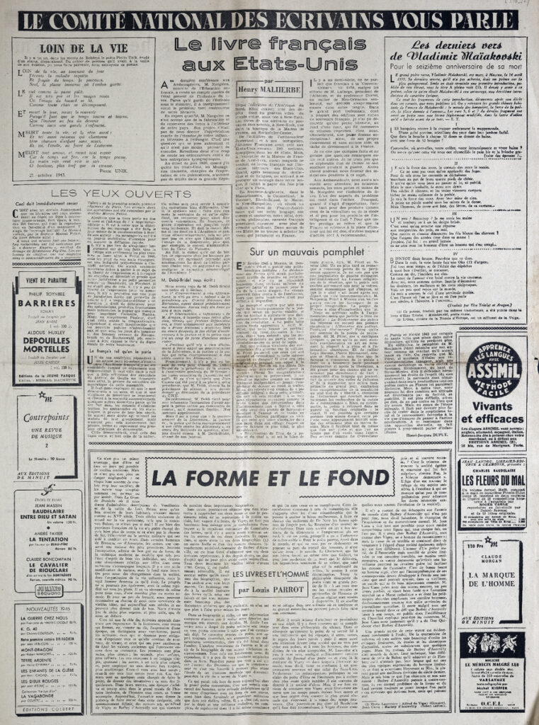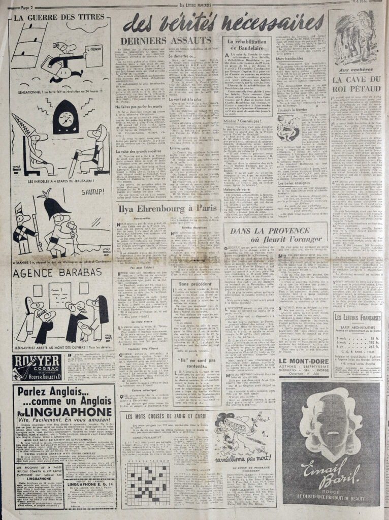 “LES LETTRES Françaises”, 6me Année – Numéro 104