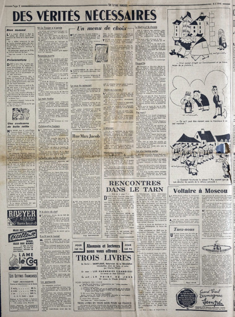 “LES LETTRES Françaises”, 6me Année – Numéro 98