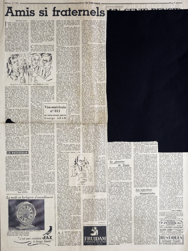 Έντυπο, στα γαλλικά, χαρτί, 8 σελίδες, 60×43 εκ. Στην πρώτη σελίδα σφραγίδα “International Book & News Agency”