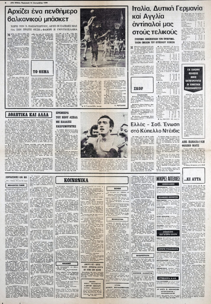 Απόκομμα της εφημερίδας “Το Βήμα” (14/09/1979).