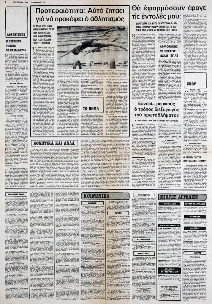 Απόκομμα της εφημερίδας “Το Βήμα” (11/09/1979).