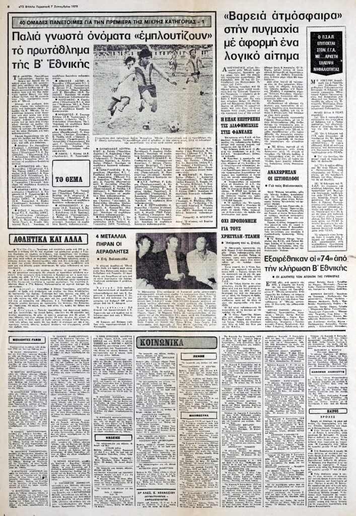 Απόκομμα της εφημερίδας “Το Βήμα” (07/09/1979).