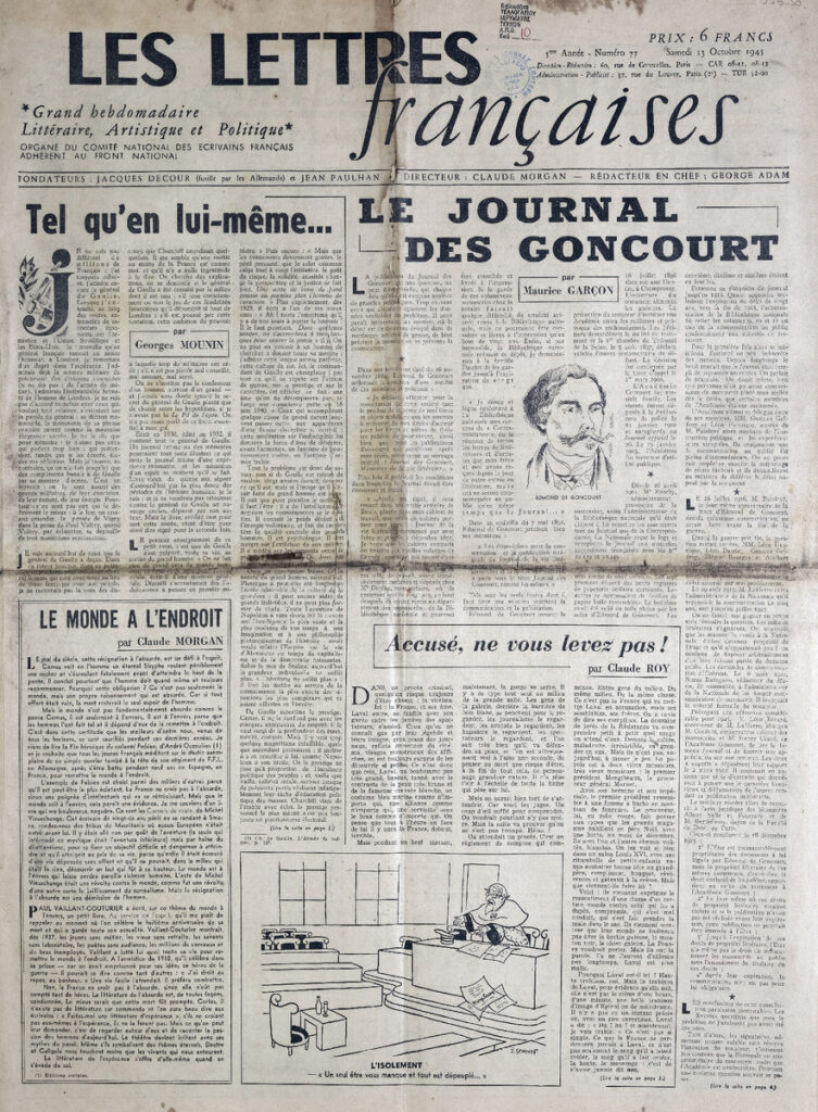 “LES LETTRES Françaises”, 5me Année – Numéro 77