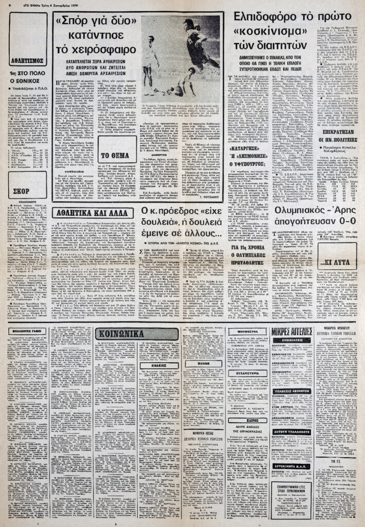Απόκομμα της εφημερίδας “Το Βήμα” (04/09/1979).