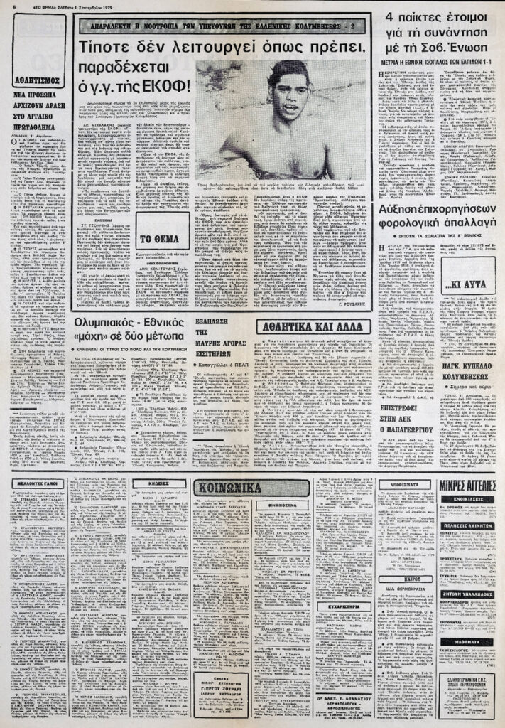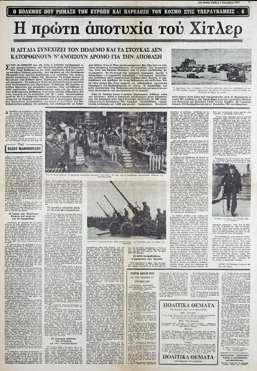 Απόκομμα της εφημερίδας “Το Βήμα” (01/09/1979)