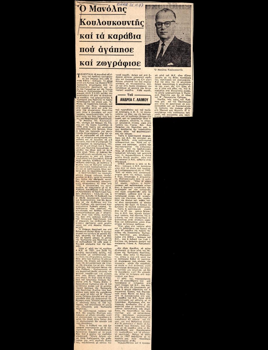 Απόκομμα της εφημερίδας “Το Βήμα” (26/11/1977).