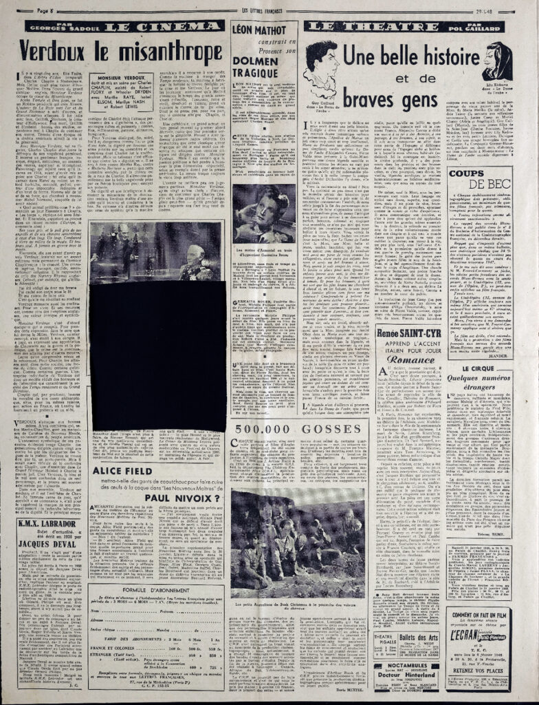 Απόκομμα εφημερίδας “Les Lettres Françaises” αρ. 193