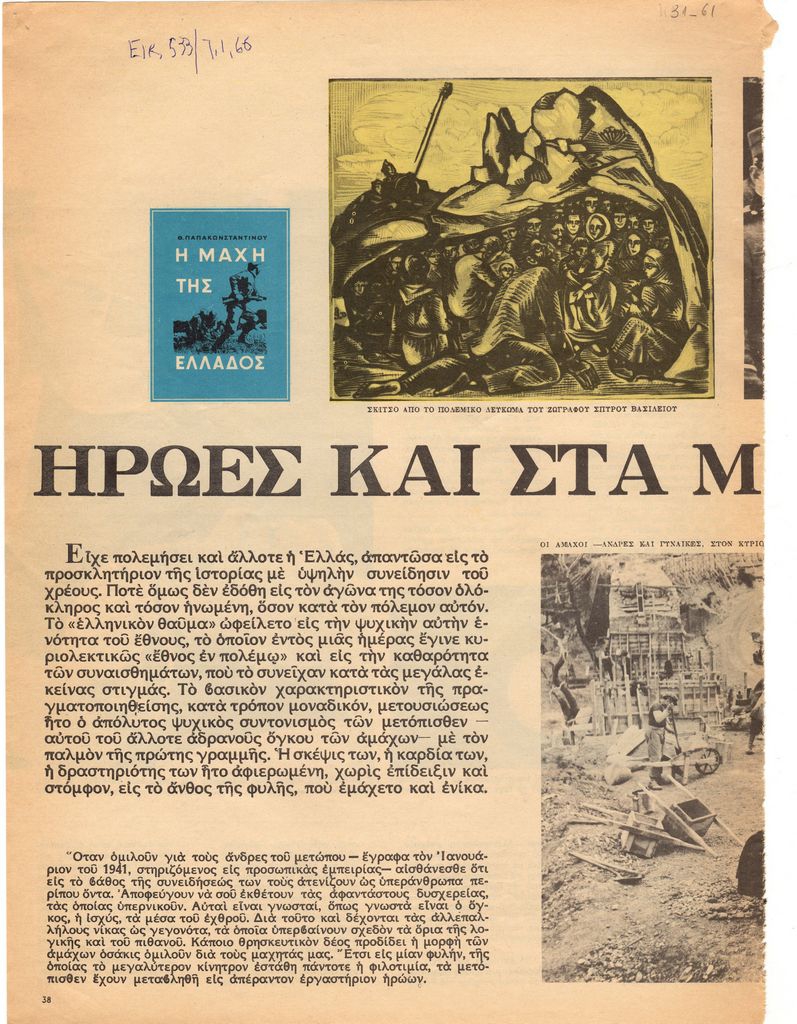 Απόκομμα, έντυπο, στα ελληνικά, χαρτί, 10 σελίδες, 33,5×25 εκ. Πάνω δεξιά επιγραφή.
