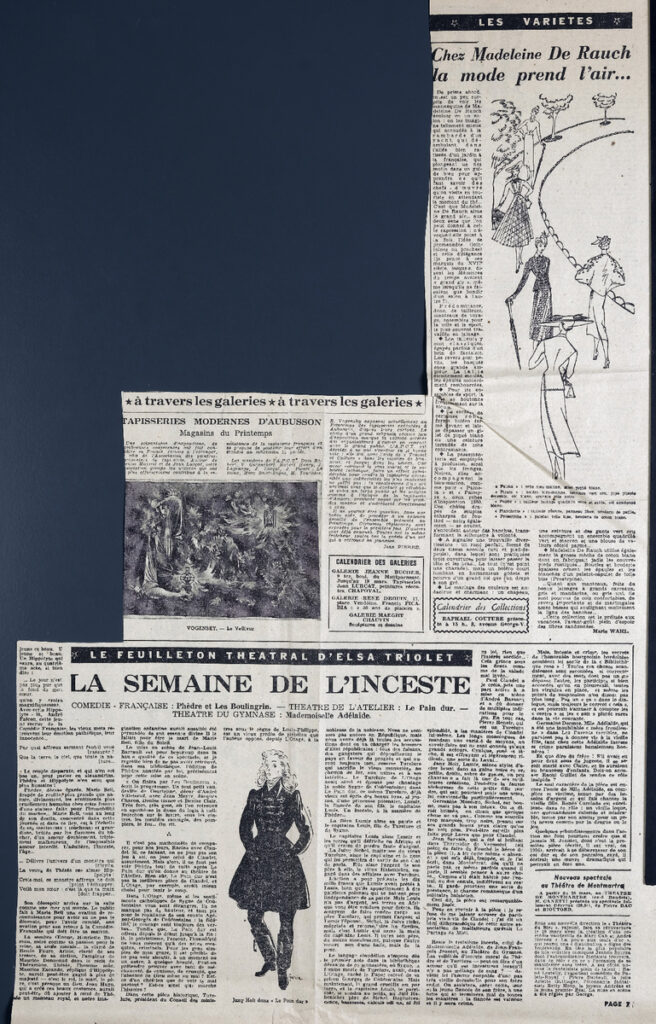 Απόκομμα, έντυπο, στα γαλλκά, χαρτί, διπλής όψης, 59,5×35,5 εκ. Το τεκμήριο εικονογραφείται. Στο ίδιο απόκομμα: Jean Pierre “Tapisseries modernes d’ Aubusson”.