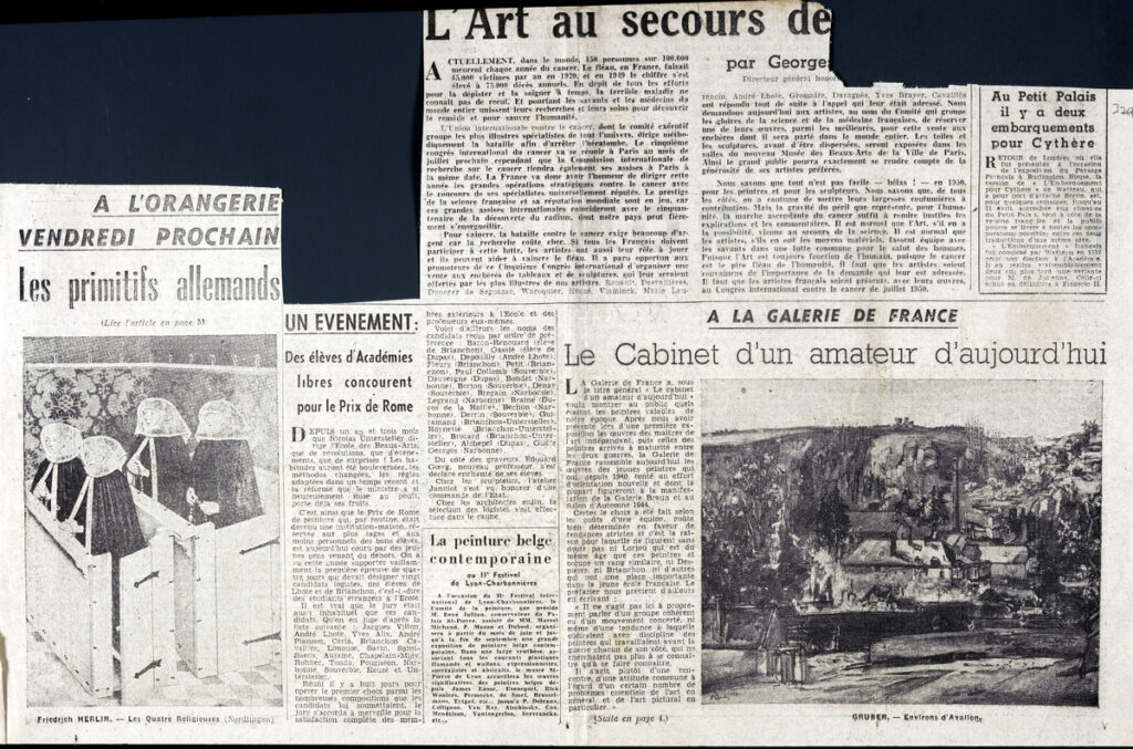 Απόκομμα, έντυπο, στα γαλλικά, χαρτί, διπλής όψης, όπου δημοσιεύεται α/μ αναπαραγωγή έργου. Στο ίδιο απόκομμα: Αναπαραγωγή έργου, α/μ, του Gruber, με τίτλο “Environs d’ Avallon”.