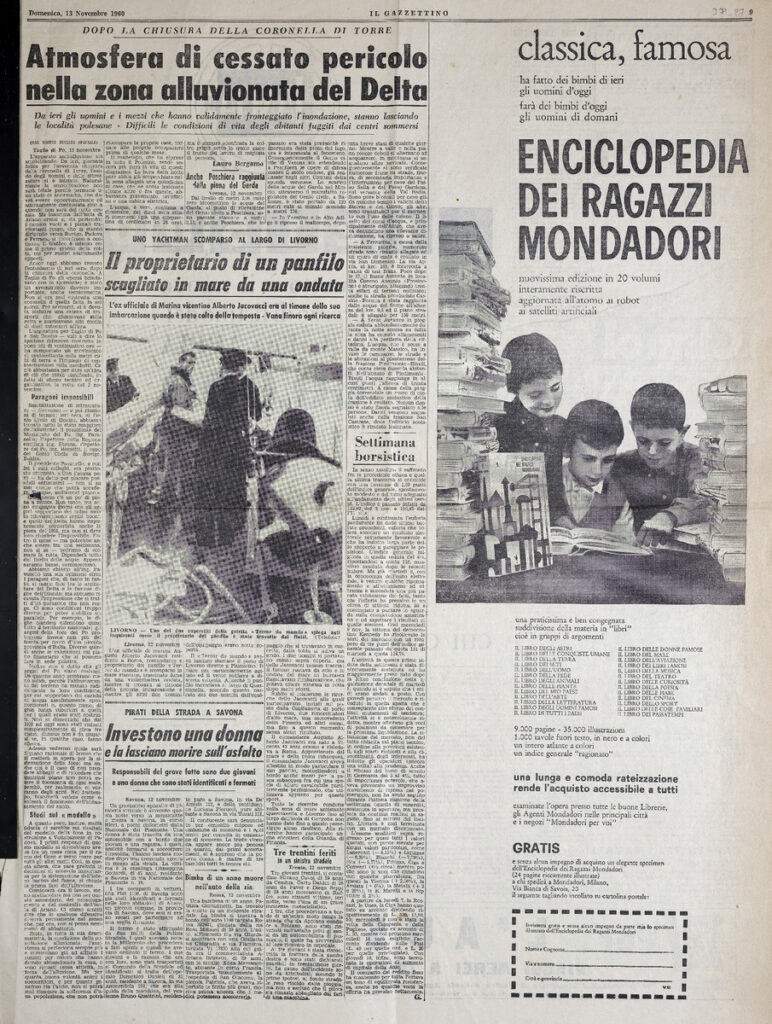 Απόκομμα, έντυπο, στα ιταλικά, χαρτί, διπλής όψης, 59×42 εκ. Το τεκμήριο εικονογραφείται.