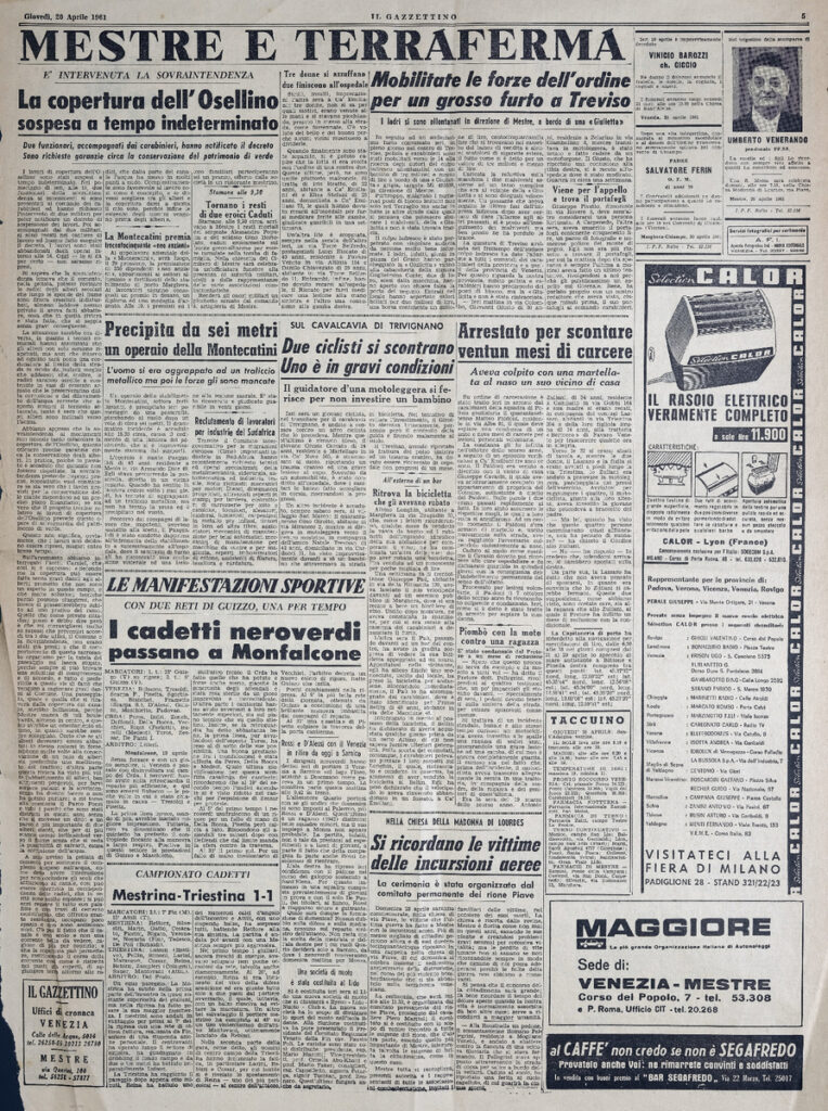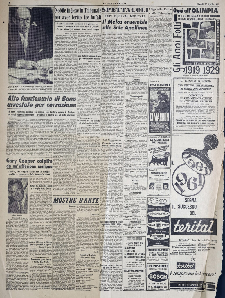 Απόκομμα της εφημερίδας “Il Gazzettino”, έντυπο, στα ιταλικά, χαρτί, διπλής όψης, 57,5×42 εκ. Το τεκμήριο εικονογραφείται.