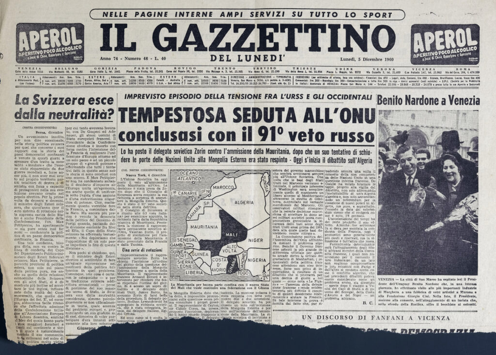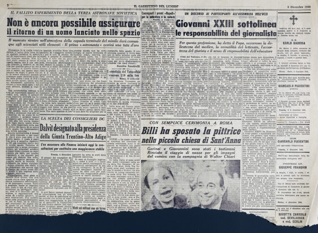 Απόκομμα της εφημερίδας “Il Gazzettino”, έντυπο, στα ιταλικά, χαρτί, διπλής όψης, 28,5×42 εκ., όπου δημοσιεύεται άρθρο του Sandro Sandrelli. Το τεκμήριο εικονογραφείται.