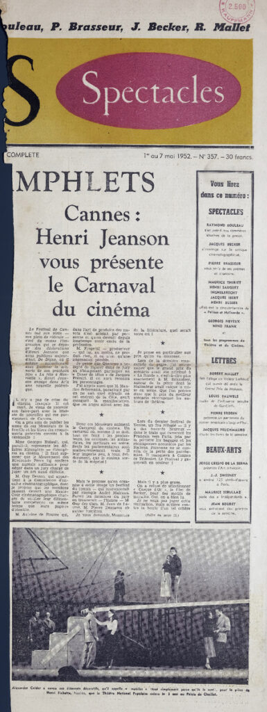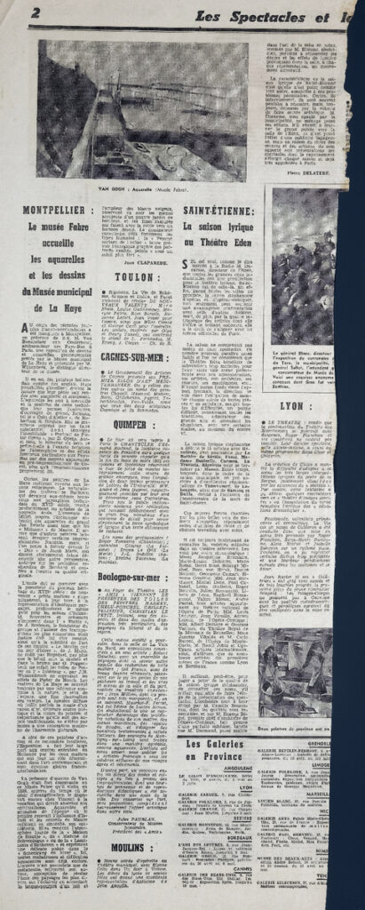 Απόκομμα του περιοδικού “Arts”, τ. 357, 01-07/05/1957, έντυπο, στα γαλλικά, χαρτί, διπλής όψης, 30,5×21,5 εκ., όπου δημοσιεύεται άρθρο του Jean Claparede.