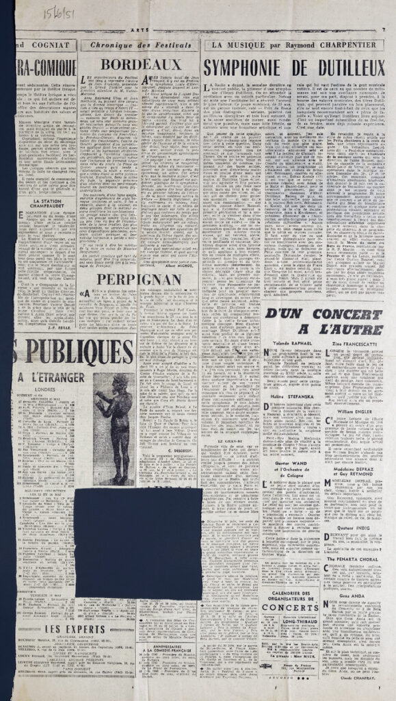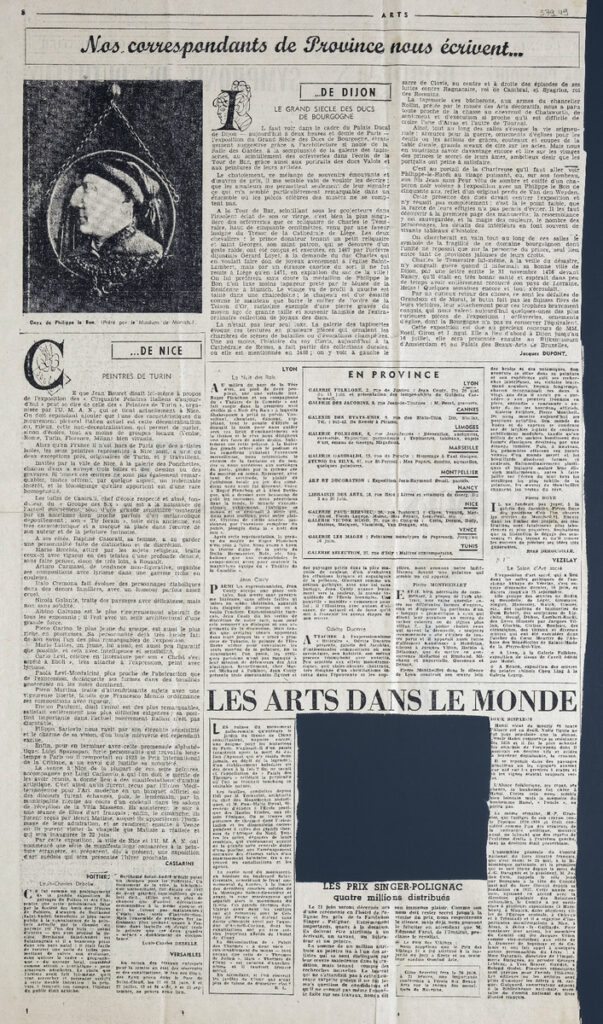 Απόκομμα του περιοδικού “Arts”, έντυπο, στα γαλλκά, χαρτί, διπλής όψης, 56×31,5 εκ., όπου δημοσιεύεται άρθρο αναφορικά με τους ζωγράφους του Τορίνου. Στο ίδιο απόκομμα: Jacques Dufont “Le grand siècle des ducs de Bourgogne”.