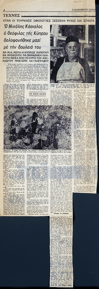 Ο Μιχάλης Κάσιαλος ο Θεόφιλος της Κύπρου δολοφονήθηκε μαζί με την δουλειά του