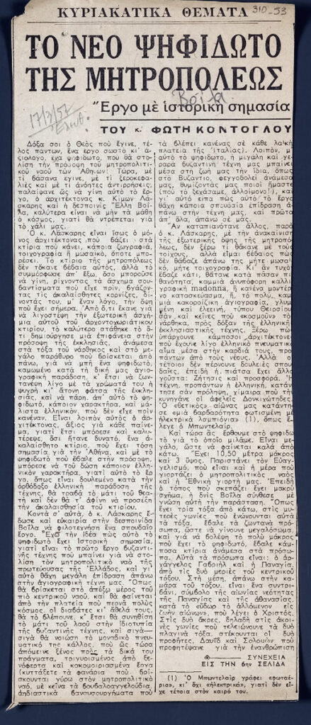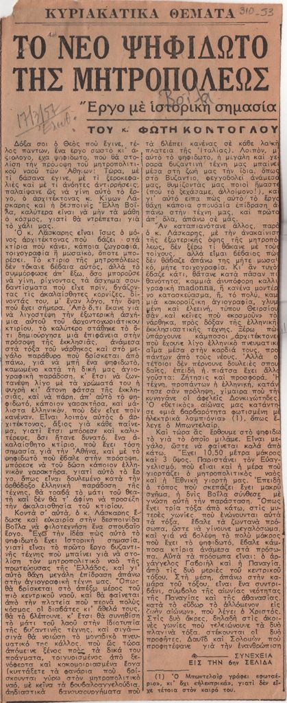 Απόκομμα της εφημερίδας “Ελευθερία” (17/03/1957).