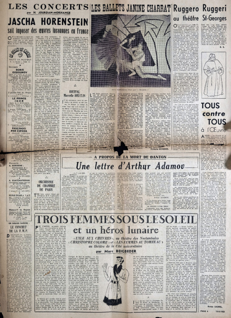 Απόκομμα εφημερίδας “Les Lettres Françaises” Αρ. 465