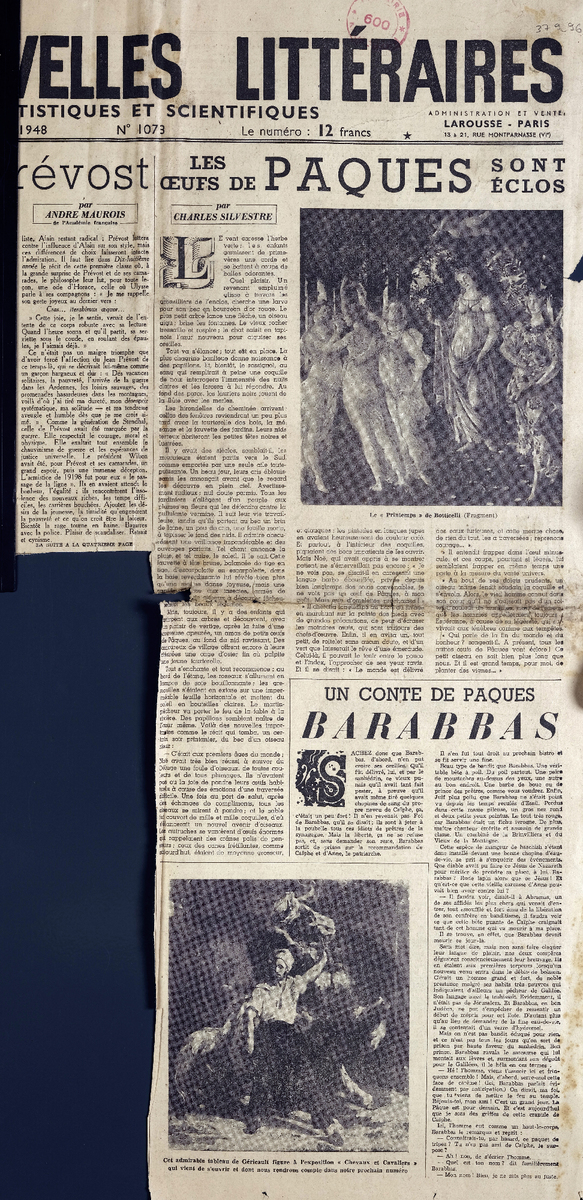 Απόκομμα, έντυπο, στα γαλλικά, χαρτί, διπλής όψης, όπου δημοσιεύεται άρθρο του Charles Silvestre.