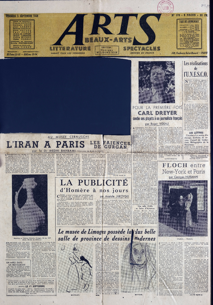 Απόκομμα, έντυπο, στα γαλλικά, χαρτί, 1 φύλλο, 2 σελίδες, όπου δημοσιεύονται άρθρα με τίτλους: Le musée de Limoges possède la plus belle salle de province de dessins modernes”.