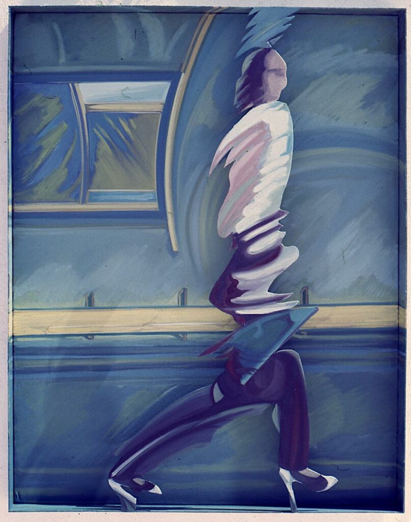 Διαφάνεια (slide), έγχρωμη, 3,5×2,5 εκ., σε πλαστικό πλαίσιο, 5,0×5,0 εκ. Αναπαραγωγή έργου του Γιώργου Ρωμανού. Στο πλαίσιο αρίθμηση.