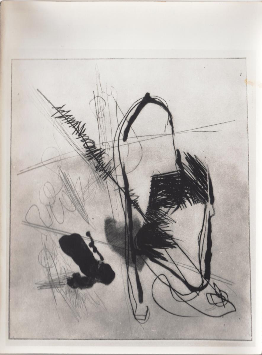 Ασπρόμαυρη φωτογραφία έργου του χαράκτη Ν. Βεντούρα εκτυπωμένη σε φωτογραφικό χαρτί, 24×18 εκ.