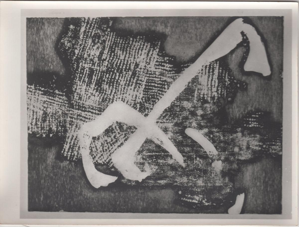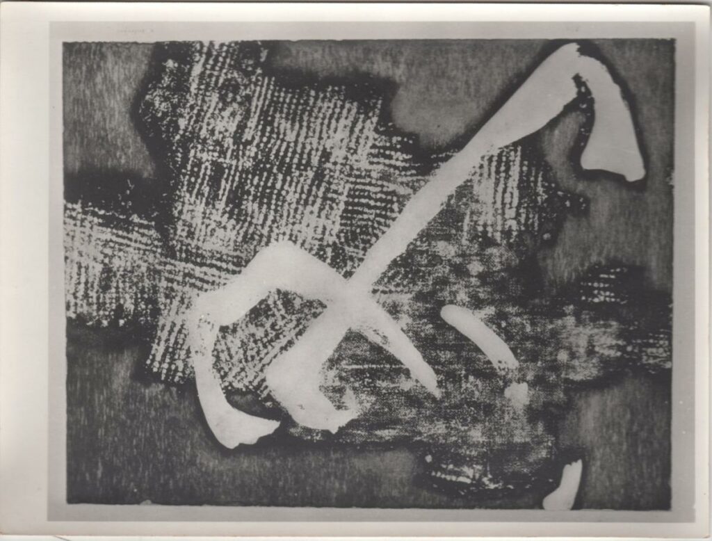 Ασπρόμαυρη φωτογραφία έργου εκτυπωμένη σε φωτογραφικό χαρτί, 18×24 εκ. Στην πίσω όψη, επιγραφές.