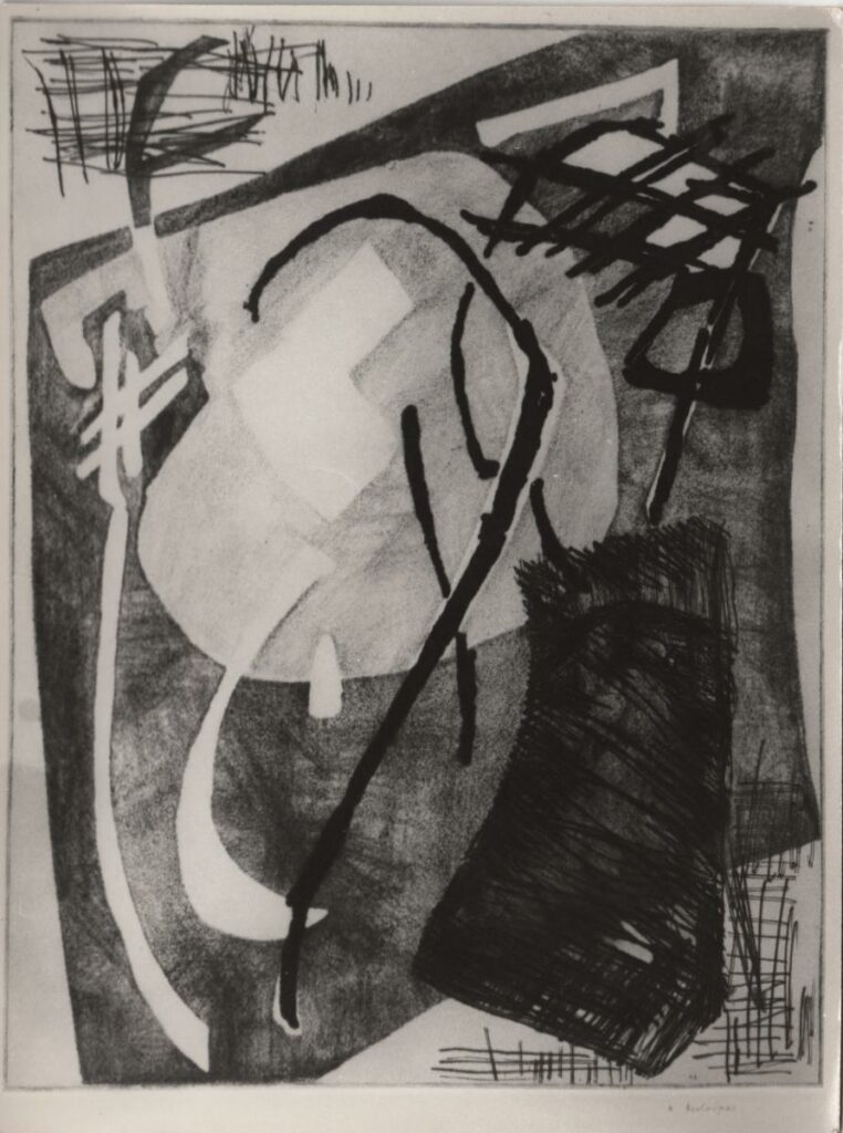 Εκτυπωμένες ασπρόμαυρες φωτογραφίες έργου του χαράκτη Ν. Βεντούρα.