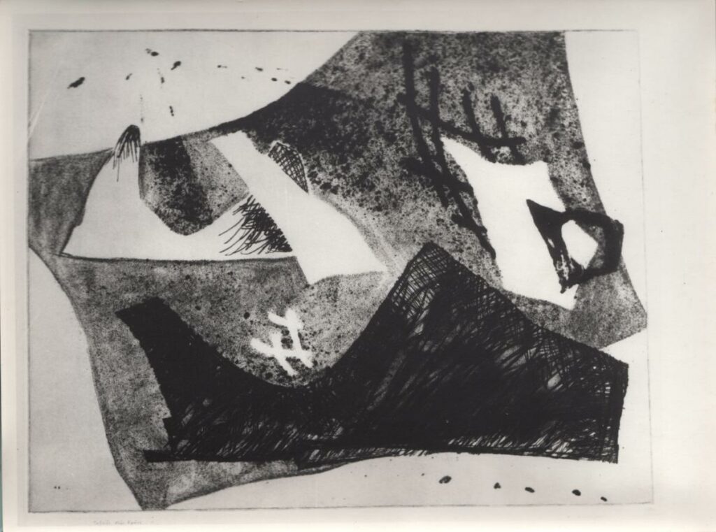 Εκτυπωμένη ασπρόμαυρη φωτογραφία έργου του Ν. Βεντούρα που φιλοτέχνησε τον Νοέμβριο του 1959.