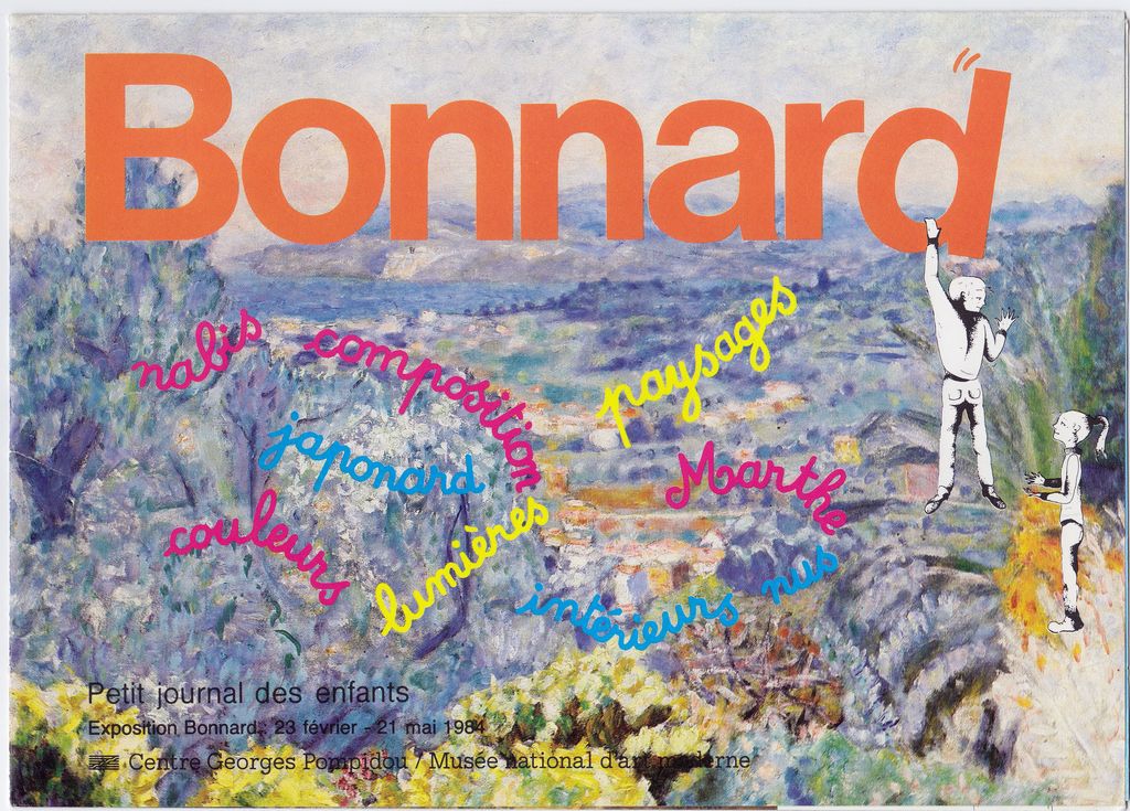 Έντυπο, χαρτόνι δίπτυχο, 15×21 εκ., στα γαλλικά, έκθεσης του Pierre Bonnard. Φέρει τον τίτλο “Petit journal des enfants” και περιέχει κείμενο εκπαιδευτικού προγράμματος με τίτλο “Deux tableaux: une histoire, un mystère”.