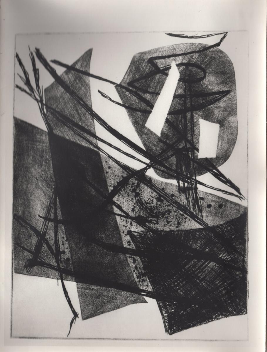 Εκτυπωμένη ασπρόμαυρη φωτογραφία έργου του χαράκτη Νικόλαου Βεντούρα που δημιούργησε τον Δεκέμβριο του 1959.