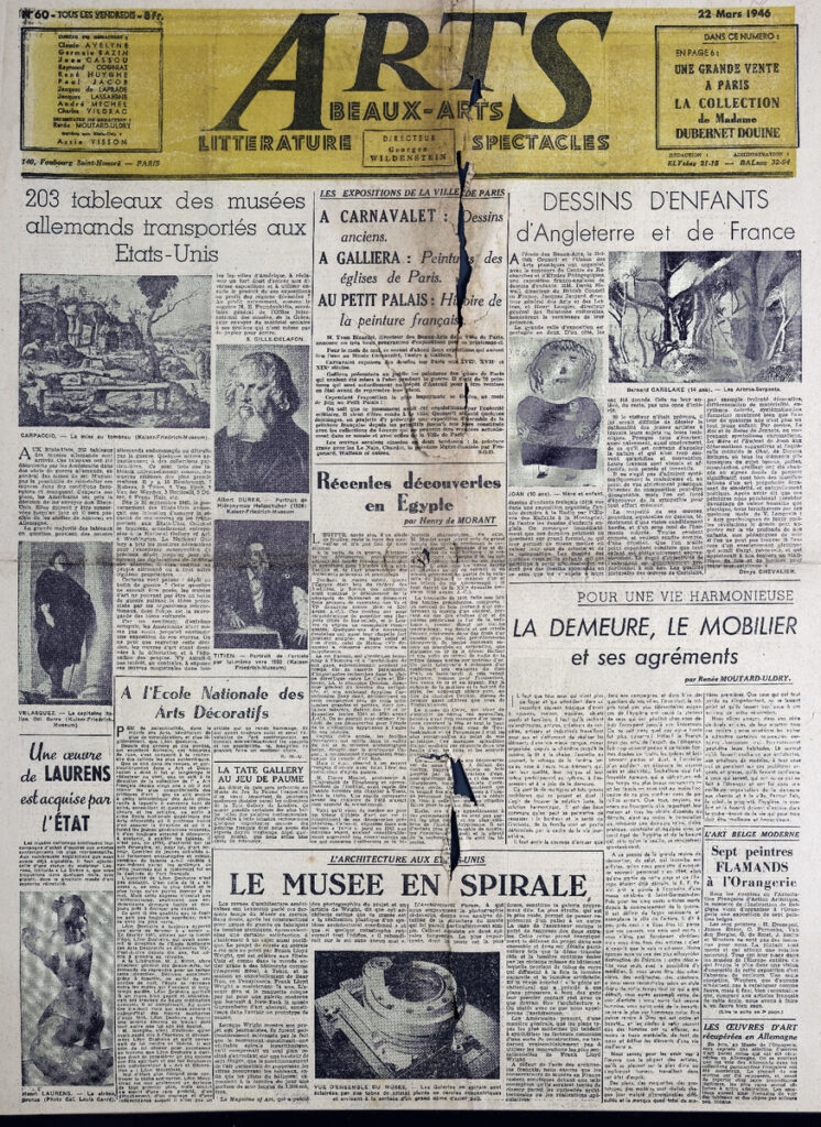 Απόκομμα του περιοδικού “Arts”, έντυπο, στα γαλλικά, χαρτί, 6 σελίδες, 60×44 εκ.