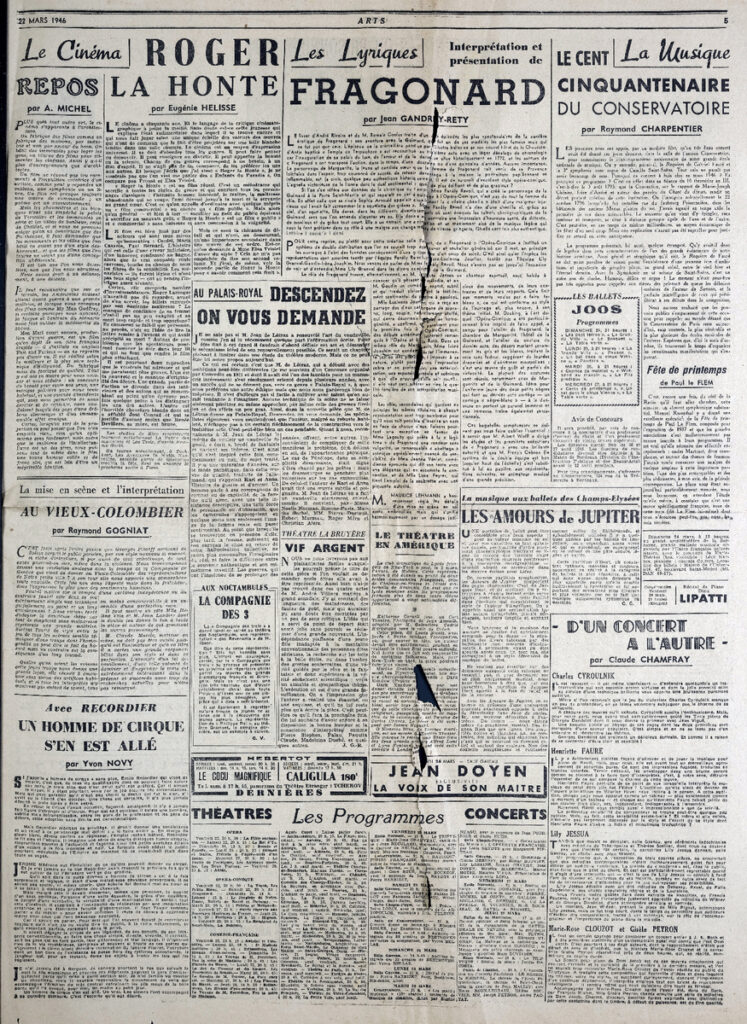 Απόκομμα του περιοδικού “Arts”, έντυπο, στα γαλλικά, χαρτί, 6 σελίδες, 60×44 εκ.