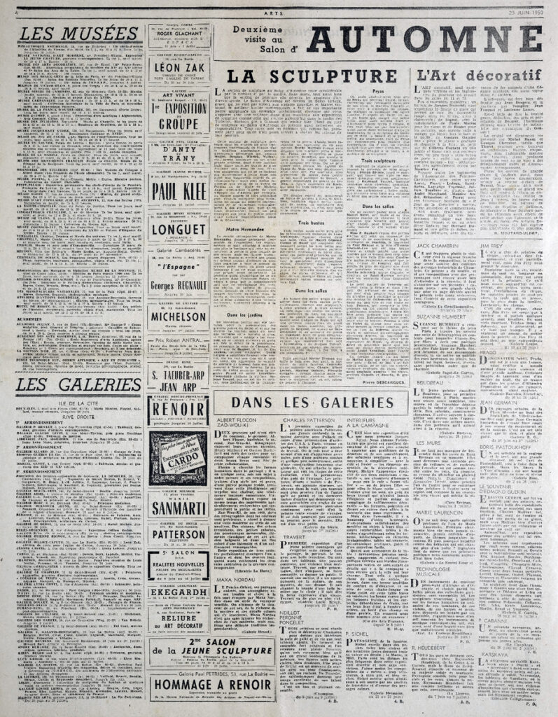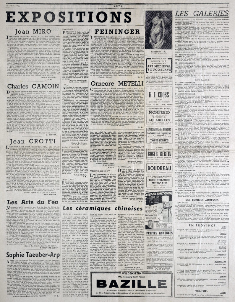Απόκομμα του περιοδικού “Arts”, έντυπο, στα γαλλικά, χαρτί, 6 σελίδες, 56×44 εκ.