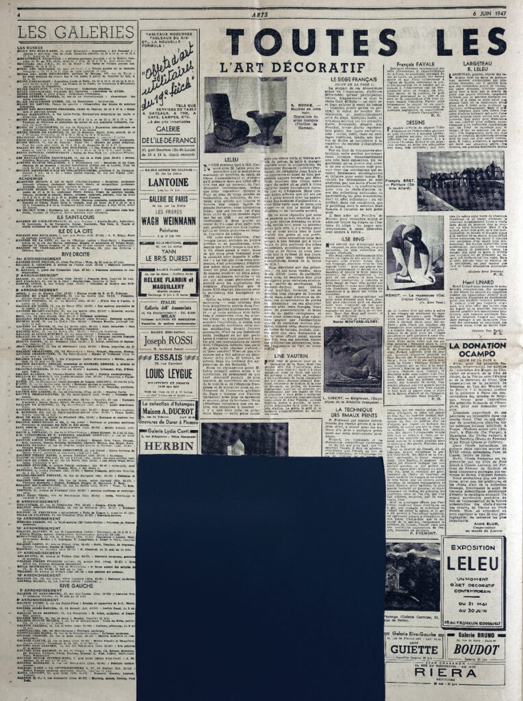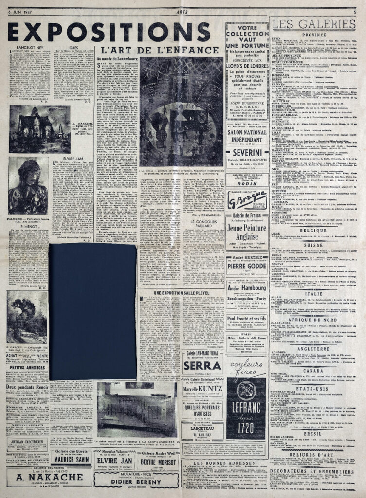 Απόκομμα της εφημερίδας “Arts”, έντυπο, στα γαλλικά, χαρτί, δίφυλλο, 60×43,5 εκ.
