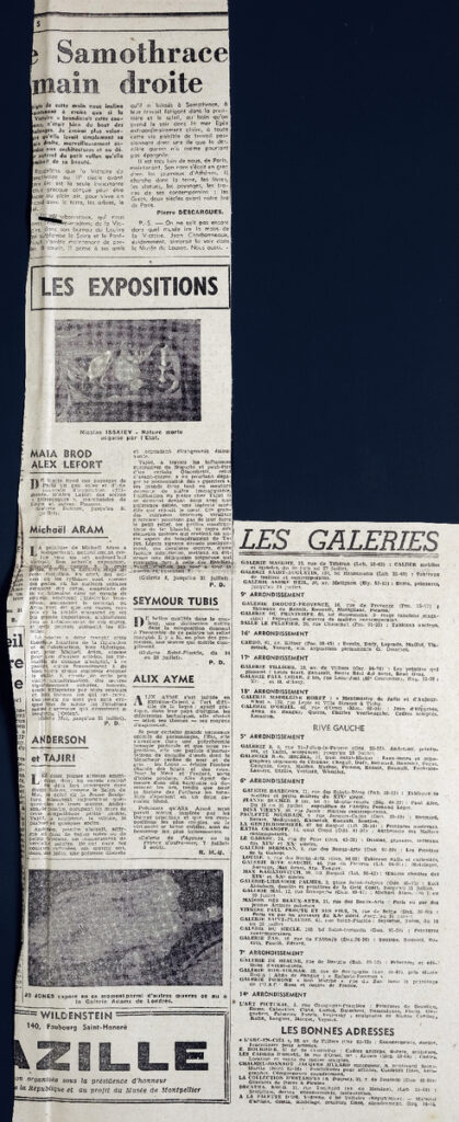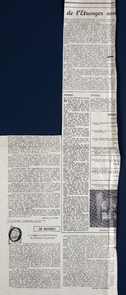 Απόκομμα εφημερίδας, έντυπο, στα γαλλικά, χαρτί, δύο όψεις, 56×22,5 εκ. Το τεκμήριο εικονογραφείται.