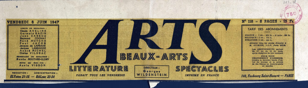 Απόκομμα του περιοδικού “Arts”, έντυπο, στα γαλλικά, χαρτί, δύο όψεις, 11×43,5 εκ.