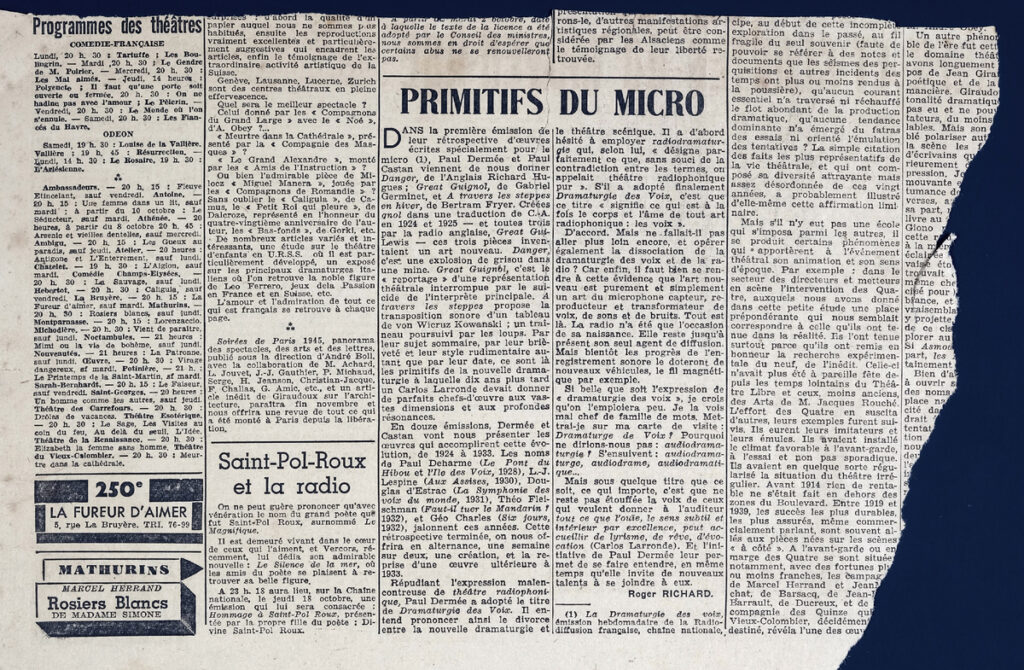 Απόκομμα του περιοδικού “Arts”, έντυπο, στα γαλλικά, χαρτί, 2 όψεις, 60×30 εκ.