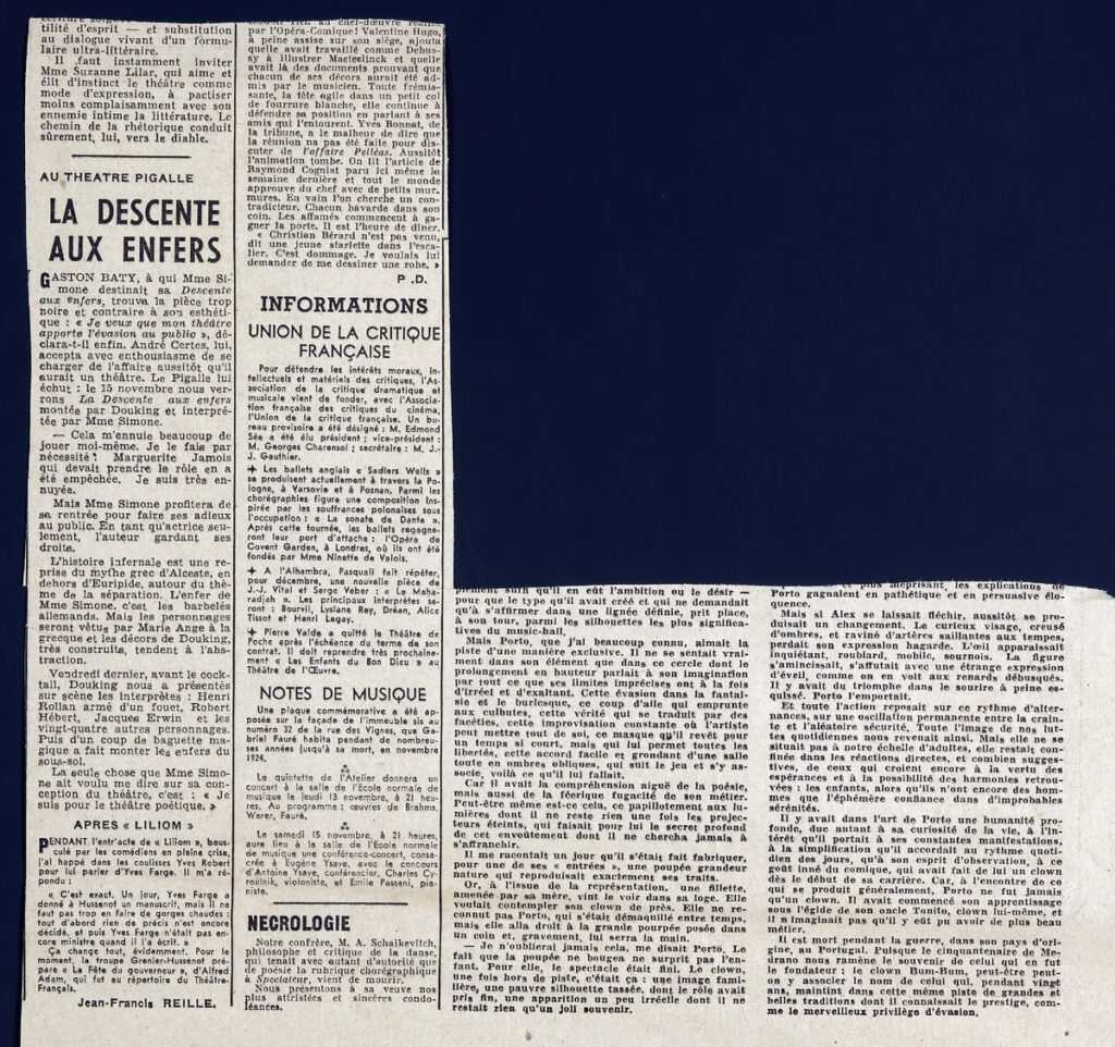 Απόκομμα εφημερίδας, έντυπο, στα γαλλικά, χαρτί, 2 όψεις, 26,5×27 εκ.