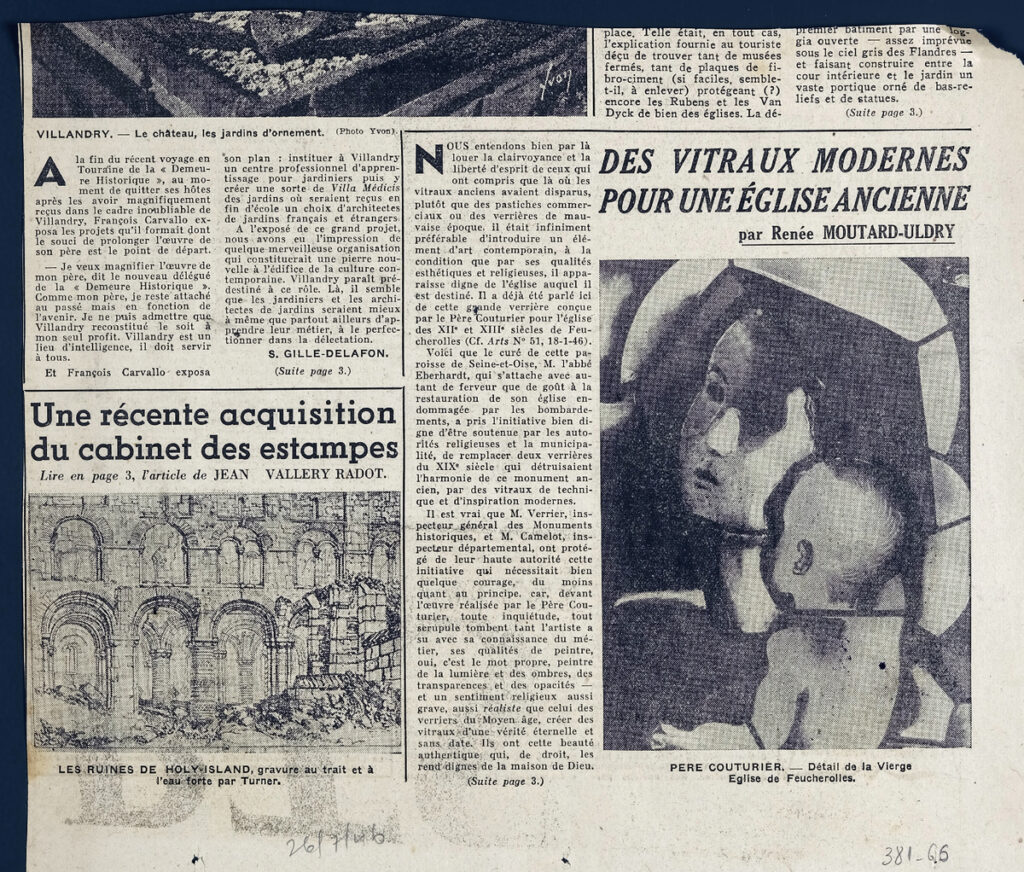 Απόκομμα εφημερίδας, έντυπο, στα γαλλικά, χαρτί, 2 όψεις, 23×26 εκ. Το απόκομμα εικονογραφείται. Στο κάτω μέρος του τεκμηρίου, επιγραφή με στοιχεία έκδοσης.