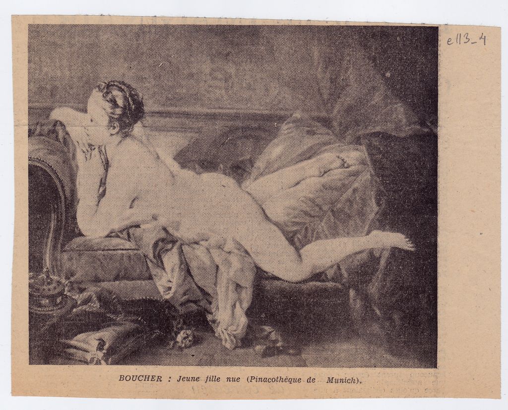 Απόκομμα, εντύπου, χαρτί, 13,0×16,5, όπου δημοσιεύεται, αναπαραγωγή έργου του Γάλλου ζωγράφου François Boucher.