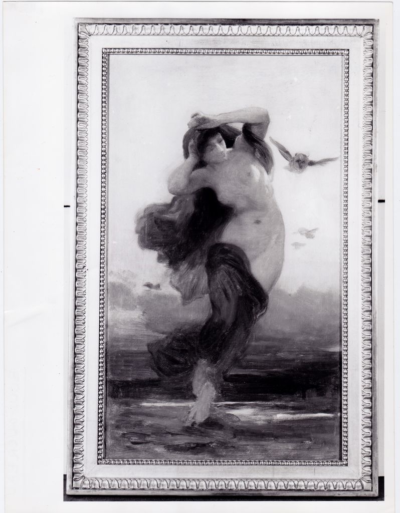 Φωτογραφία, α/μ, φωτογραφικό χαρτί, 24,0×17,8 εκ. Αναπαραγωγή έργου του Γάλλου ζωγράφου William Bouguereau. Στην πίσω όψη, επιγραφή με τα στοιχεία του έργου και σφραγίδα του φωτογράφου Andre Morain.