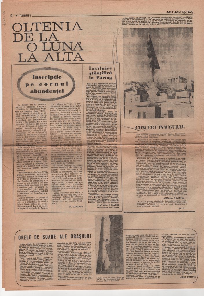 Απόκομμα εντύπου, χαρτί, 2 φφ διπλής όψης, 40×30 εκ., στα ρουμάνικα, με αναφορά στο συνέδριο για τον Constantin Brancusi, που διεξάγεται στο Βουκουρέστι τον Οκτώβρη 1967. Στο ίδιο απόκομμα, άρθρα πολιτιστικού ενδιαφέροντος.
