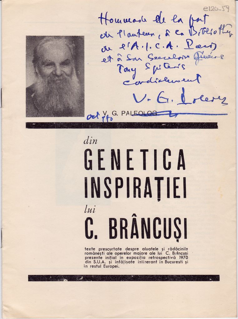Ανάτυπο, χαρτί, 7 φφ διπλής όψης, 22.5×16.5 εκ., στα ρουμάνικα και γαλλικά, δημοσίευσης κειμένου αφιερωμένου στον Constantin Brancusi. Δημοσιεύτηκε στο πλαίσιο αναδρομικής έκθεσης έργων του, η οποία διεξήχθη στο Βουκουρέστι το 1970.