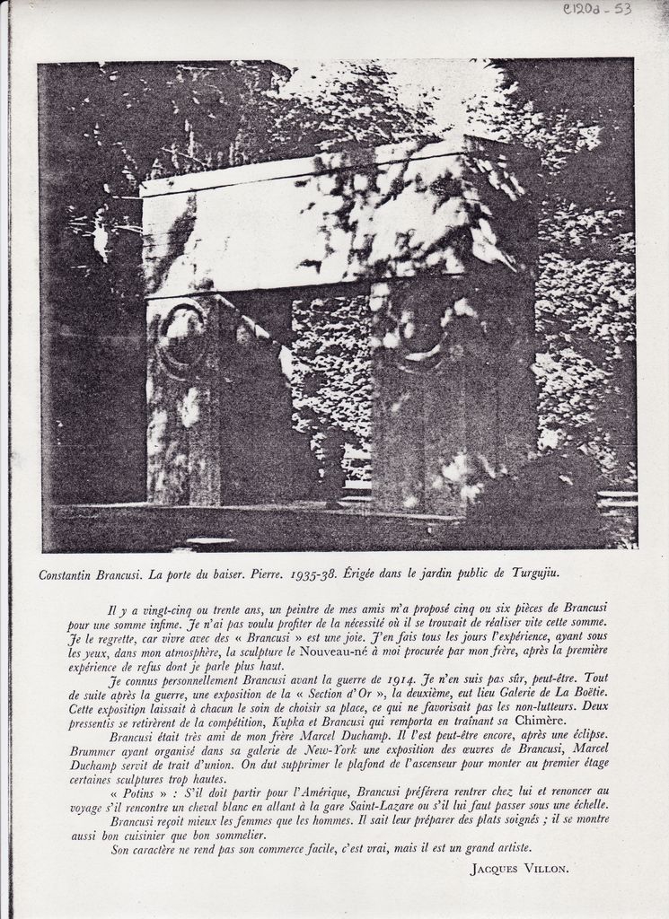 Φωτοαντίγραφο αποσπάσματος κεφαλαίου βιβλίου, χαρτί, 6 φφ, 33×21.5, στα γαλλικά, αφιερωμένου στον Constantin Brancusi. Αναγράφονται κρίσεις για τον καλλιτέχνη και το έργο του.