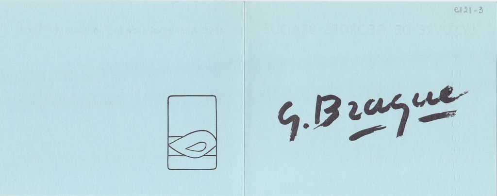 Πρόσκληση, χαρτόνι αναδιπλωμένο, 10.5×13.5 εκ., στα γαλλικά, εγκαινίων έκθεσης του Georges Braque, η οποία διεξάγεται στο καινούριο μουσείο της Havre.