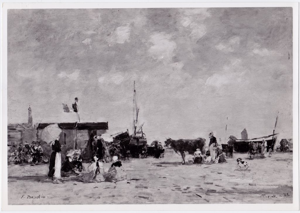 Φωτογραφία, α/μ, φωτογραφικό χαρτί, 16,0×22,8 εκ. Αναπαραγωγή έργου του Γάλλου ζωγράφου Eugène Boudin. Στην πίσω όψη, επιγραφή με το όνομα του καλλιτέχνη και σφραγίδα του φωτογράφου Robert Schmidt.