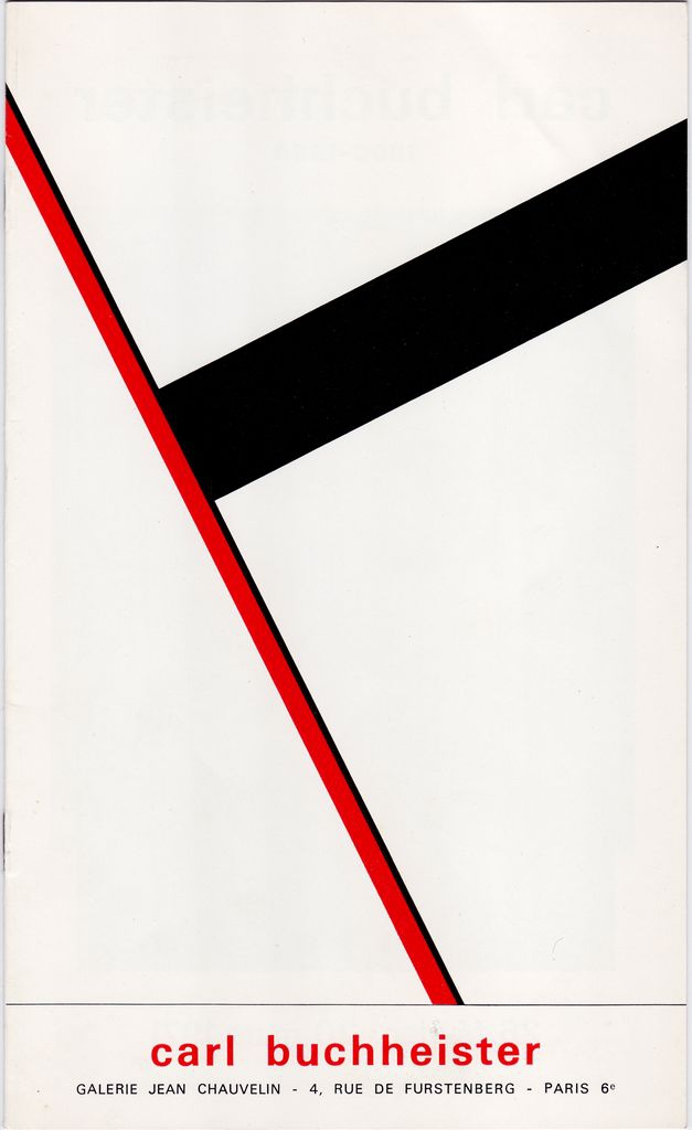 Έντυπο, στα γαλλικά, τετρασέλιδο, χαρτί ιλουστρασιόν, 23,0×14,0 εκ. Φυλλάδιο ατομικής έκθεσης έργων του Carl Buchheister, που διοργανώθηκε στο Παρίσι το 1971.